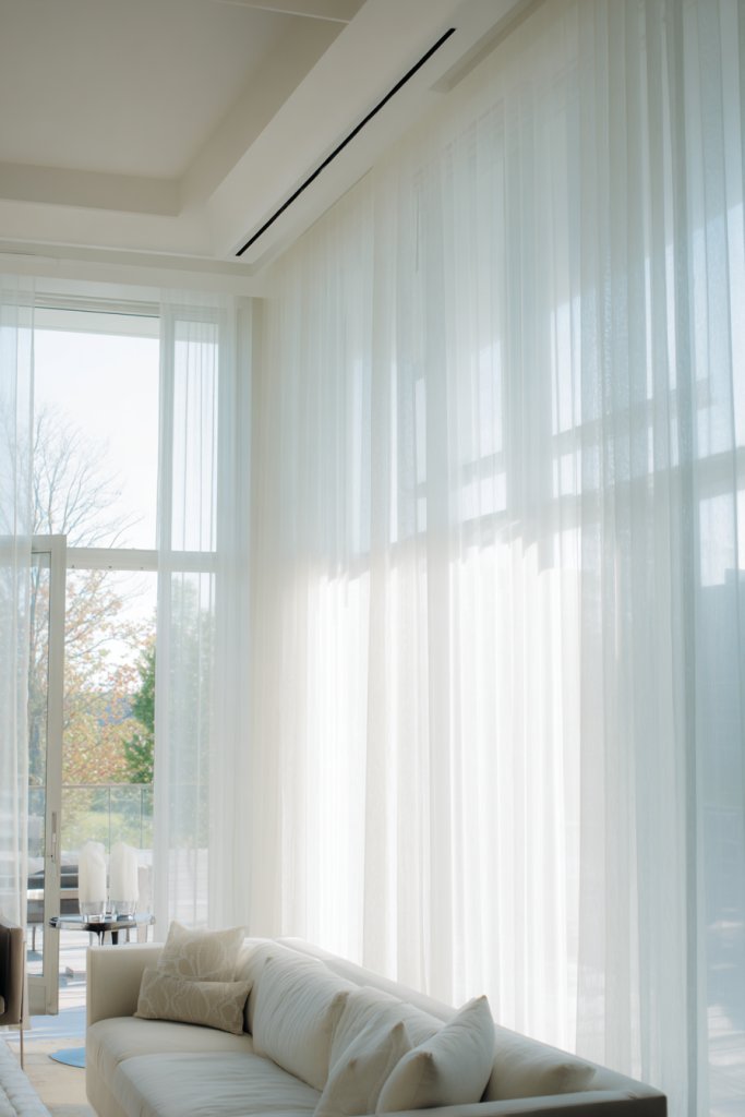 Imagine delicate, sheer curtains in a soft ivory fluttering gently in the breeze, diffusing sunlight softly across your room. The light fabric filters out harsh glare while maintaining privacy. When paired with minimalist window frames, the overall look is clean and modern. The airy fabric adds a touch of softness, making your space feel larger and more inviting.
