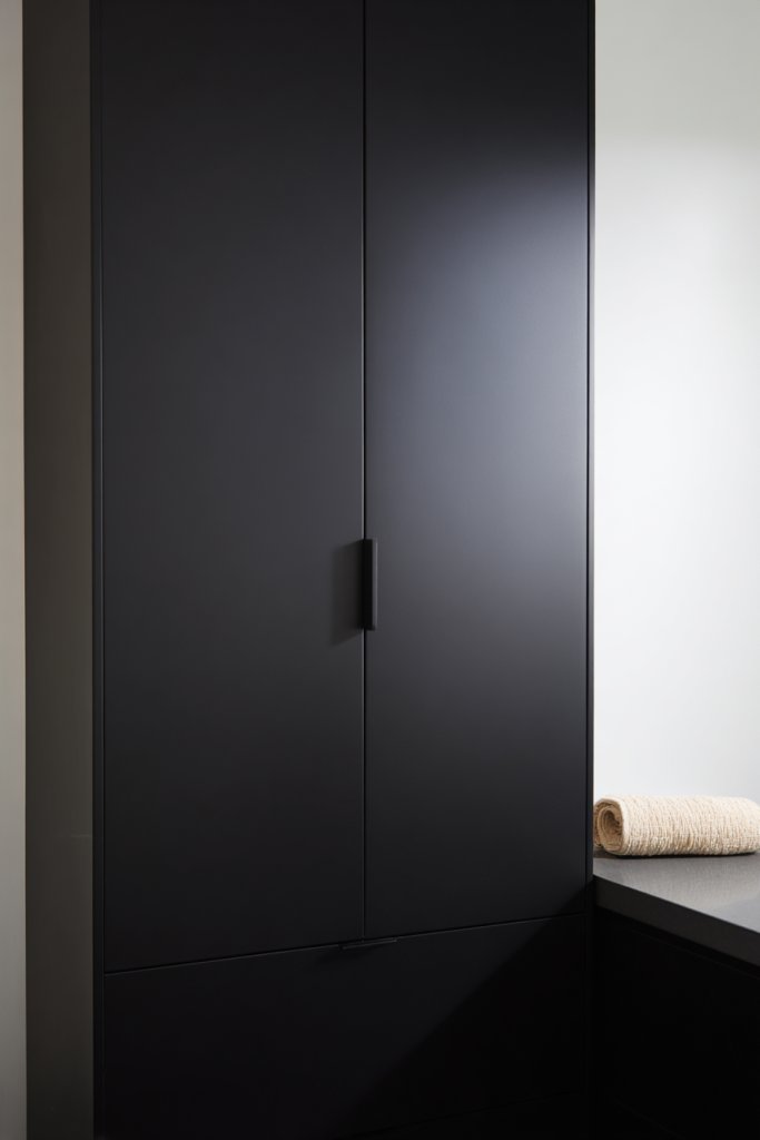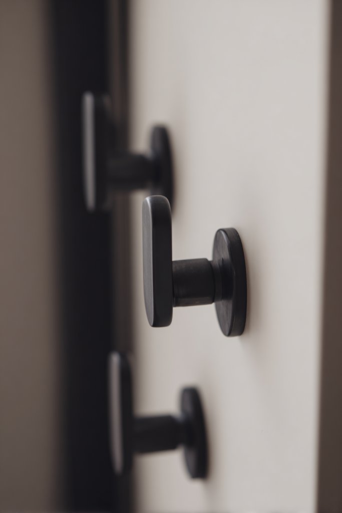 Small details like door handles and hooks often go unnoticed but can make a big design statement. Black hardware adds sleekness and cohesion, tying together all your dark elements beautifully.