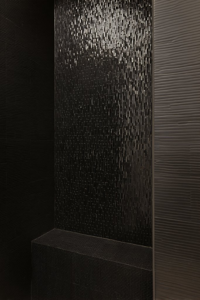 Imagine a deep black tiled niche in your shower, contrasting with lighter tiles or textured walls. The pattern or texture of the tiles adds depth and dimension. When lit softly, the niche becomes a captivating feature that draws the eye.