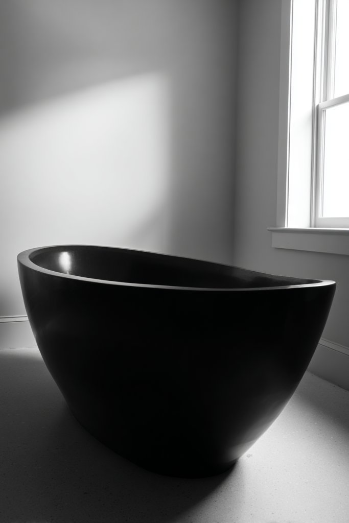 3. Deep Black Freestanding Bathtub as a Statement Piece