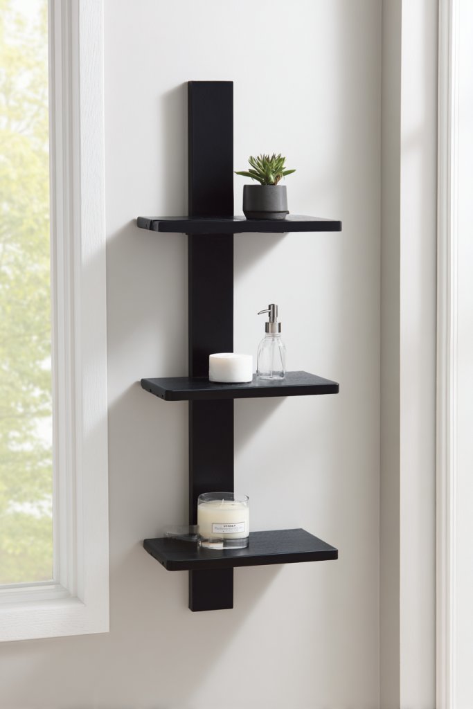 Open shelving in black provides a modern, functional look that can evolve with your style. It’s a simple upgrade that keeps your essentials handy while adding visual depth. Your bathroom will look organized, stylish, and inviting, encouraging daily use and admiration.