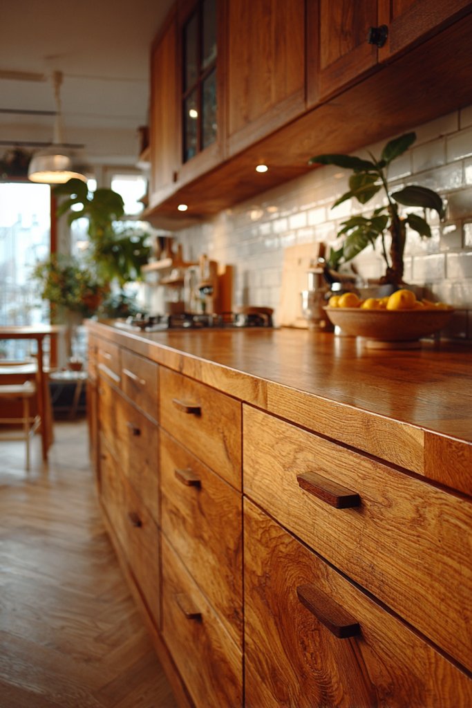 1. Warm Wooden Cabinets with Soft Matte Finishes