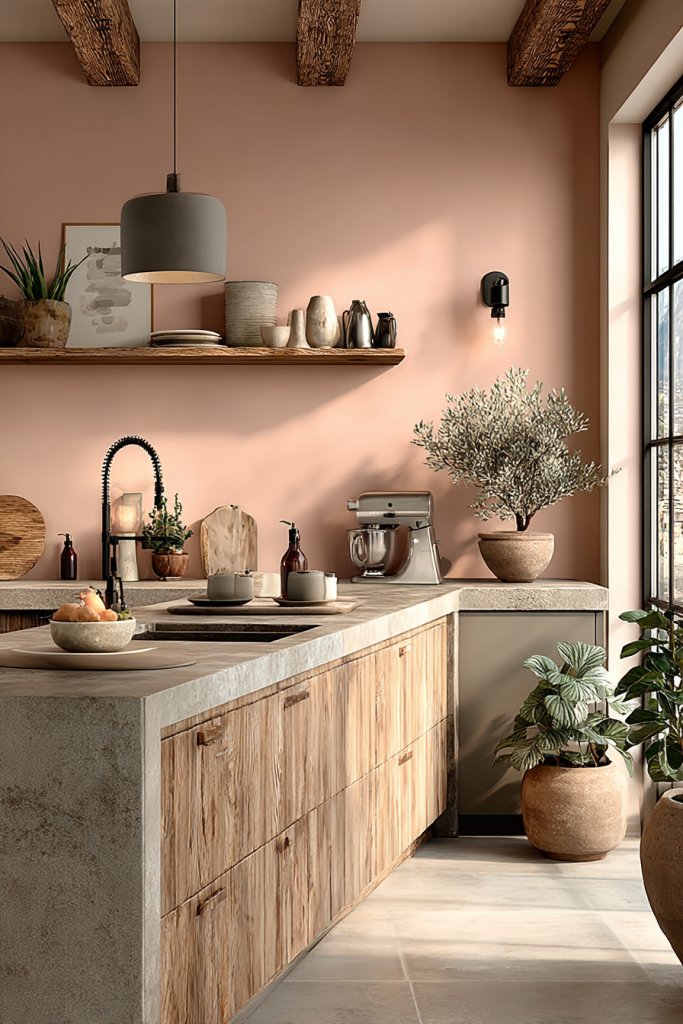 Picture brushed brass cabinet handles, copper faucets, and gold-toned light fixtures that catch and reflect warm light. These accents complement soft wall colors and textured surfaces beautifully. The warm metallics introduce a layer of richness and depth, transforming a plain kitchen into a stylish retreat. The subtle glow invites touch and admiration.