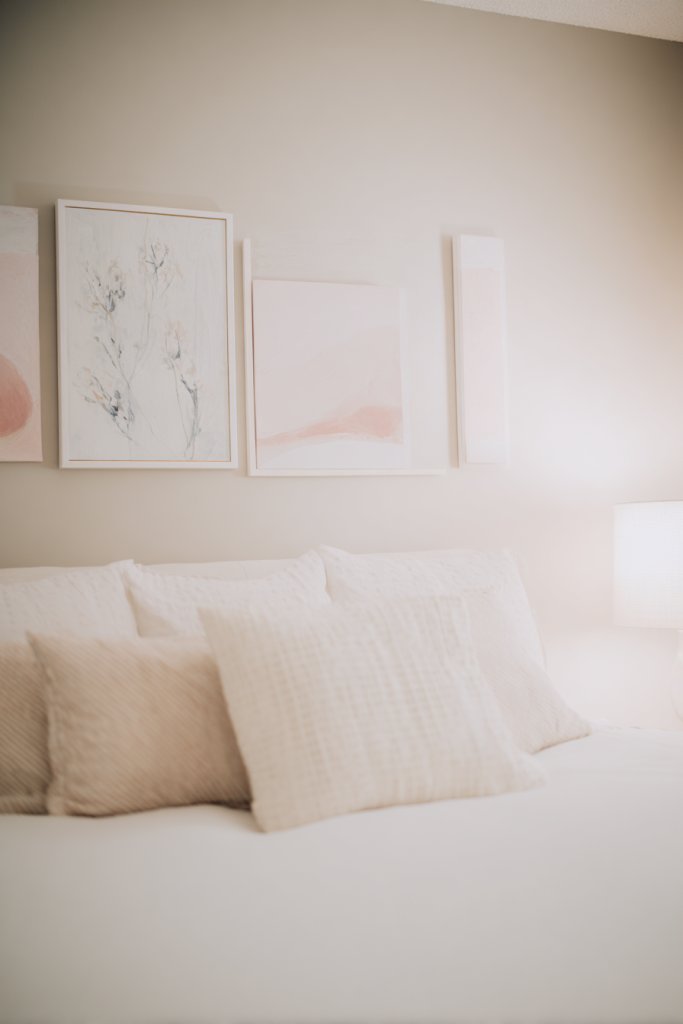 Blank, stark walls can make a bedroom feel cold and uninviting. Adding soft, subtle wall decor enhances the space without overwhelming it. Paintings, prints, or wall coverings in calming colors and gentle designs create a peaceful backdrop that encourages relaxation. If your walls are crying out for a little love, this idea is a quick fix.