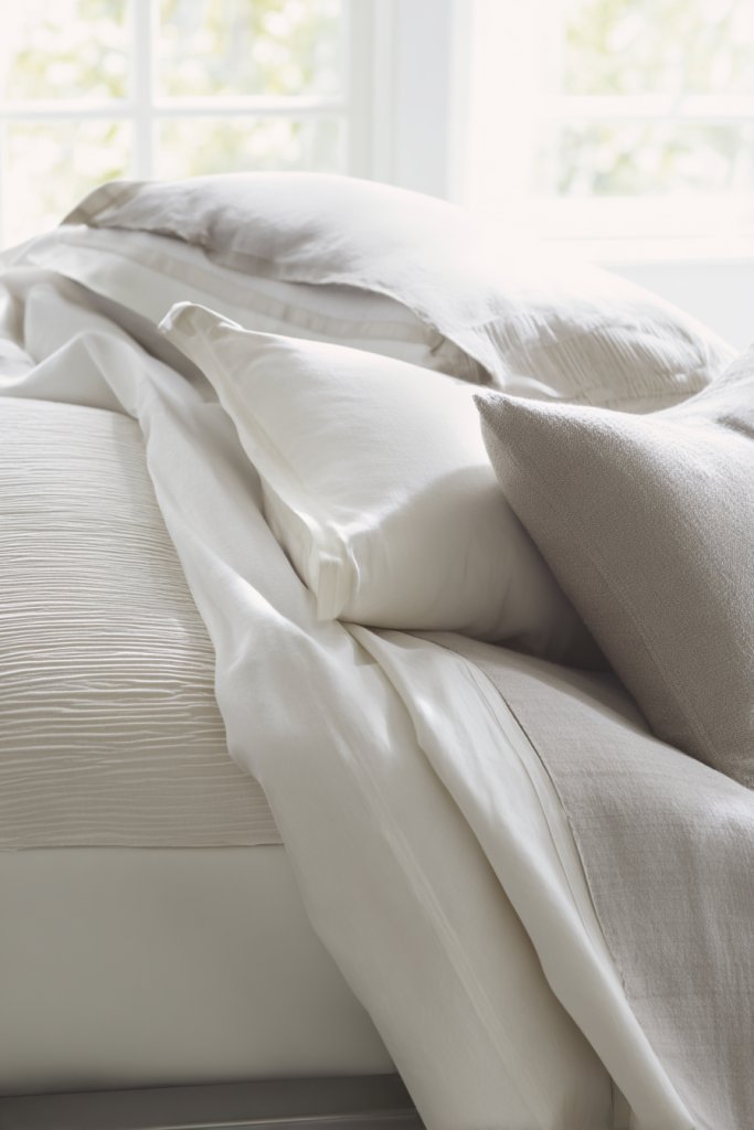 1. Soft, Layered Bedding in Calm, Neutral Tones