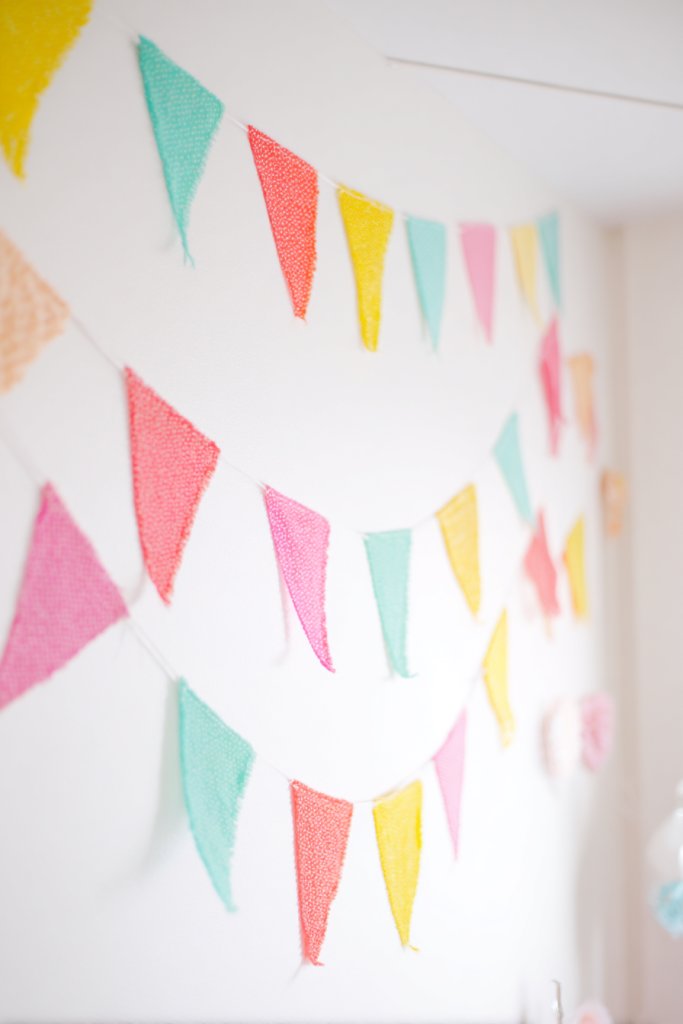 11. Hang Lightweight Fabric Banners or Bunting in Bright Colors