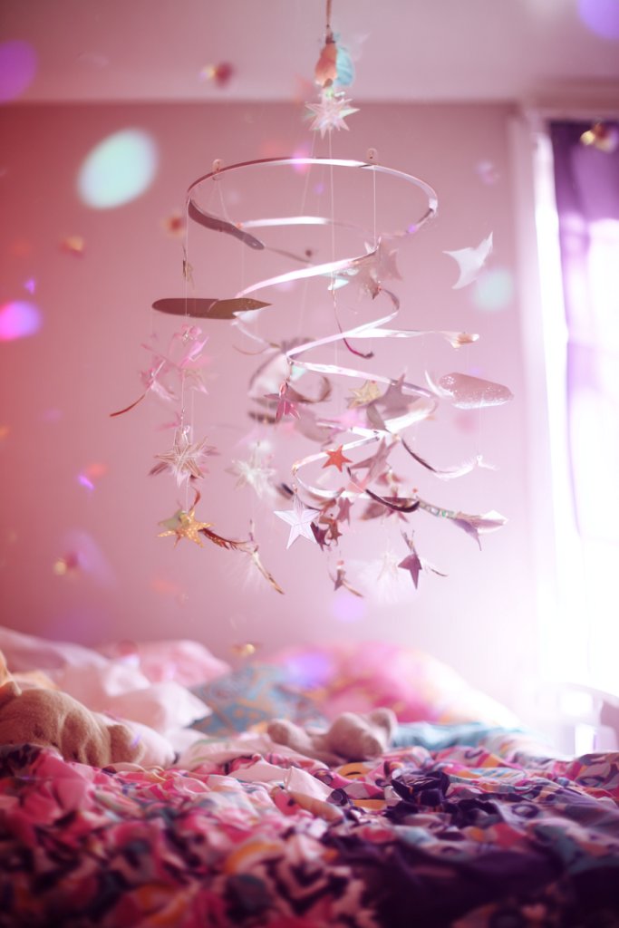 13. Place a Swirling Mobile with Floating Elements Over the Bed
