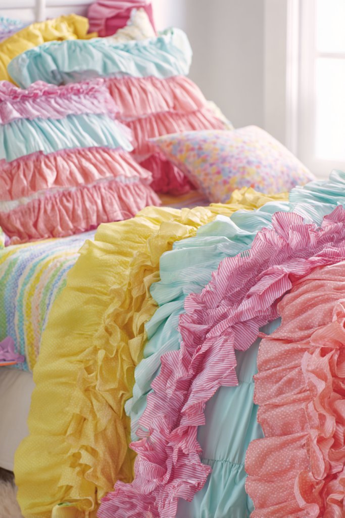 14. Use Whimsical-themed Bedding with Ruffles and Bright Colors