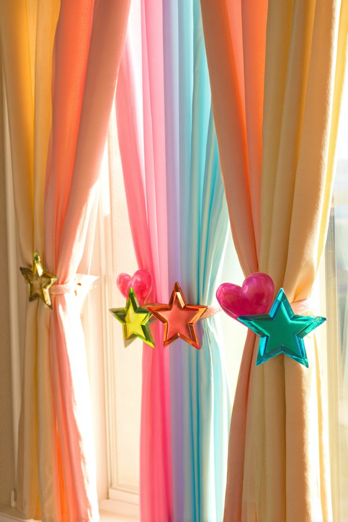 17. Install Colorful Curtain Tiebacks Shaped Like Stars or Hearts