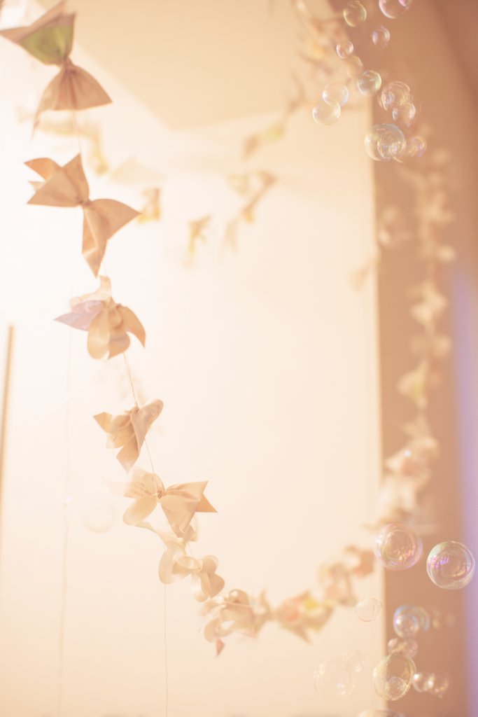 19. Hang a String of Miniature Paper Bows or Bubbles