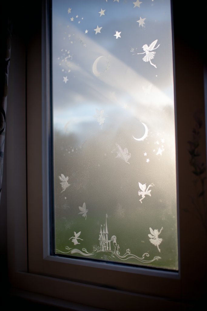 Create your own custom stickers with printable sticker paper or paint designs for a unique look. Incorporate themed sets—like celestial, fairy tale, or fantasy motifs—to match your decor. Change out stickers seasonally for variety. Add tiny LED fairy lights around the window frame for an extra magical glow.