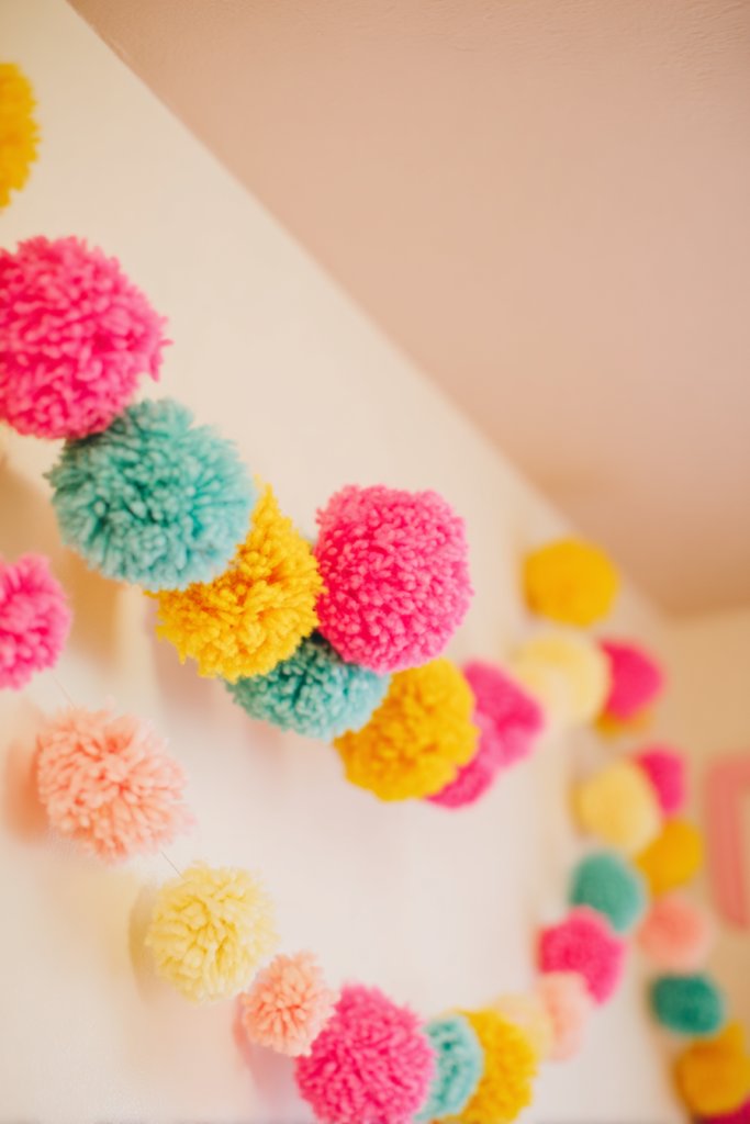 24. Decorate with Handmade Pom-Pom Garlands in Bright Hues