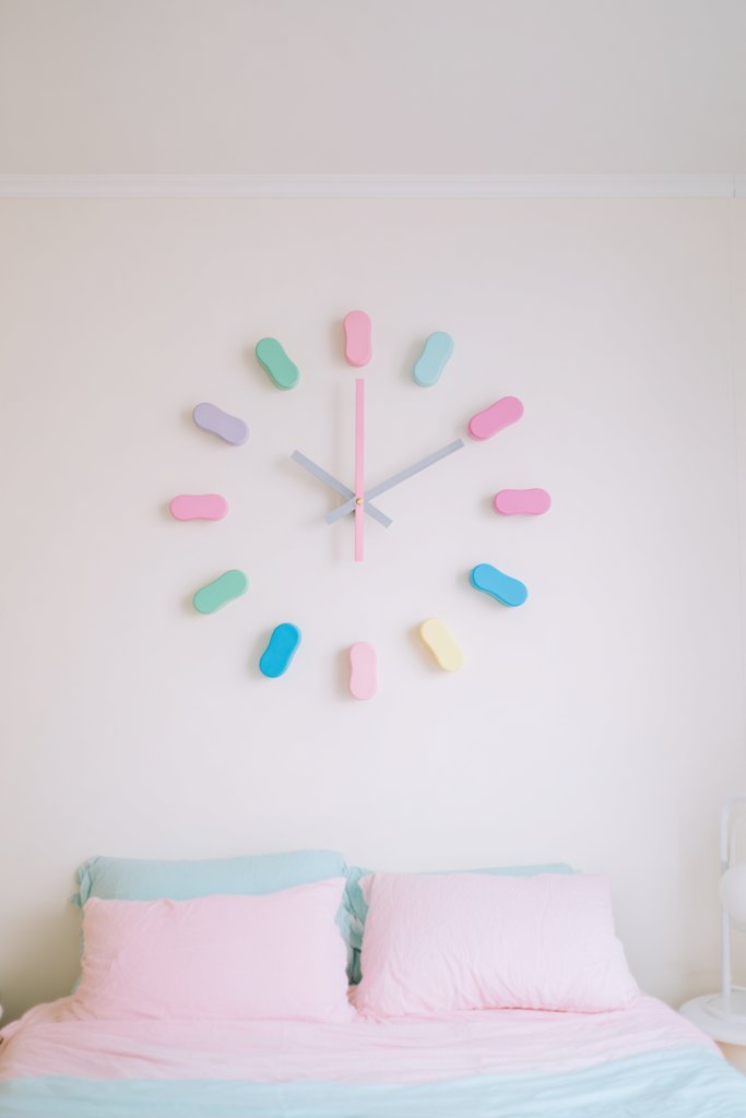 3. Use Pastel-Colored Wall Clocks as Statement Pieces