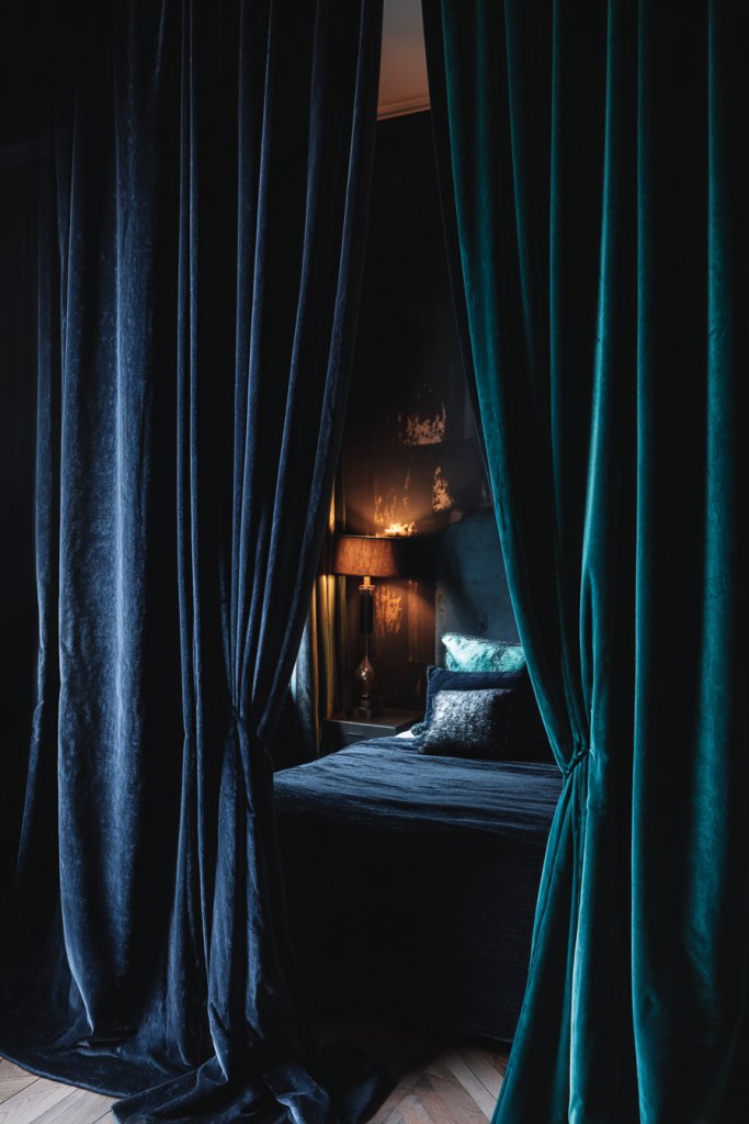 5. Velvet Curtains in Deep Shades for Privacy and Drama