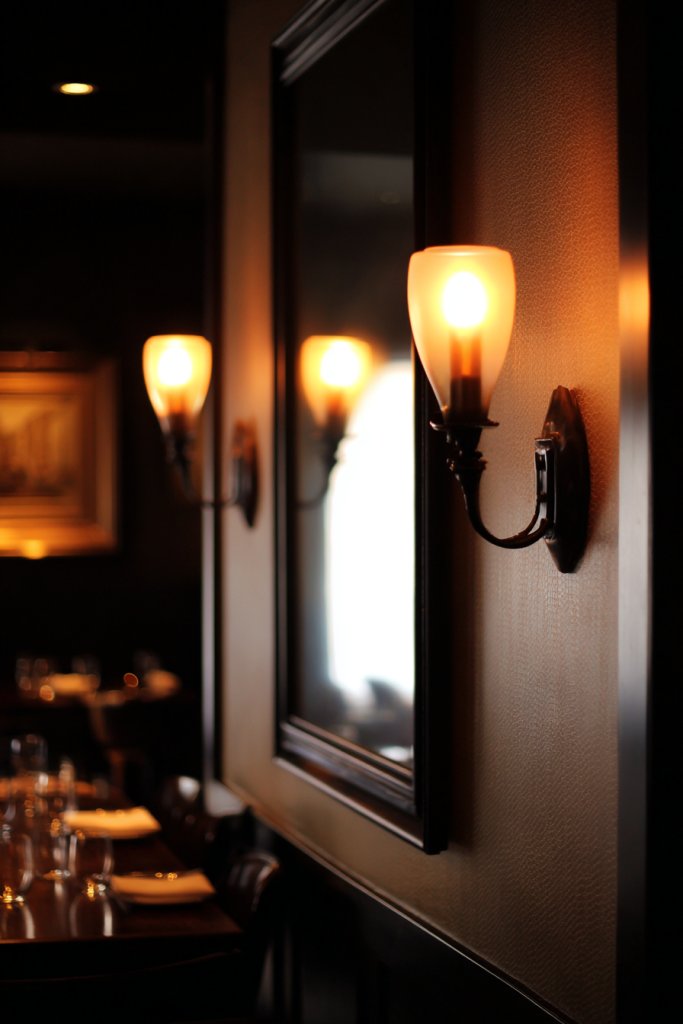 Position sconces about eye level for balanced light. Ensure wiring is safe and professional if installing new fixtures. Use dimmers to control brightness and create versatility. If using candles, select unscented varieties to avoid interfering with the meal’s aroma. Keep lighting clean and free of dust for a polished look.