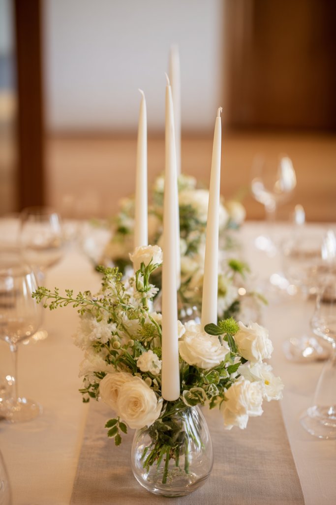 11. Decorate with Elegant Centerpieces Using Candles and Fresh Florals