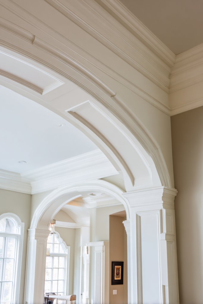 Opt for ornate, carved moldings for traditional decor or sleek, simple lines for modern spaces. Archways can be full-height or half, depending on your ceiling height and style preference. Use contrasting colors or finishes to highlight the architectural features. In smaller rooms, subtle molding can add just enough detail without overwhelming.