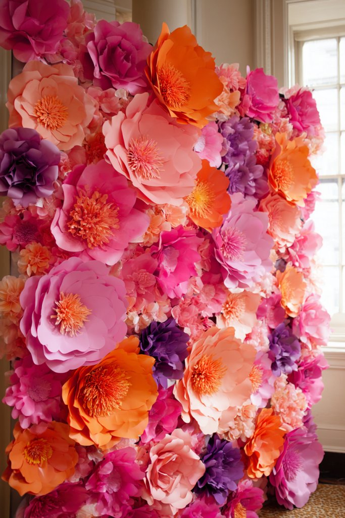 Visualize a wall covered in colorful paper blooms—roses, peonies, and daisies—crafted from textured cardstock or tissue paper. The flowers are layered and arranged in clusters or cascading patterns, creating a lively, garden-like scene. Bright hues like pink, yellow, and green pop against a neutral backdrop, making the wall feel cheerful and inviting. The 3D effect adds depth and dimension, making it almost indistinguishable from real flowers.