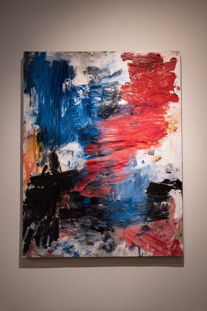 Picture a large canvas splashed with vibrant, sweeping strokes of red, blue, and yellow. The brushwork is expressive and unrestrained, giving a sense of movement and emotion. The texture of the paint adds dimension, catching light and creating shadows. The overall effect is lively, modern, and full of personality—like capturing a moment of spontaneity in art form.