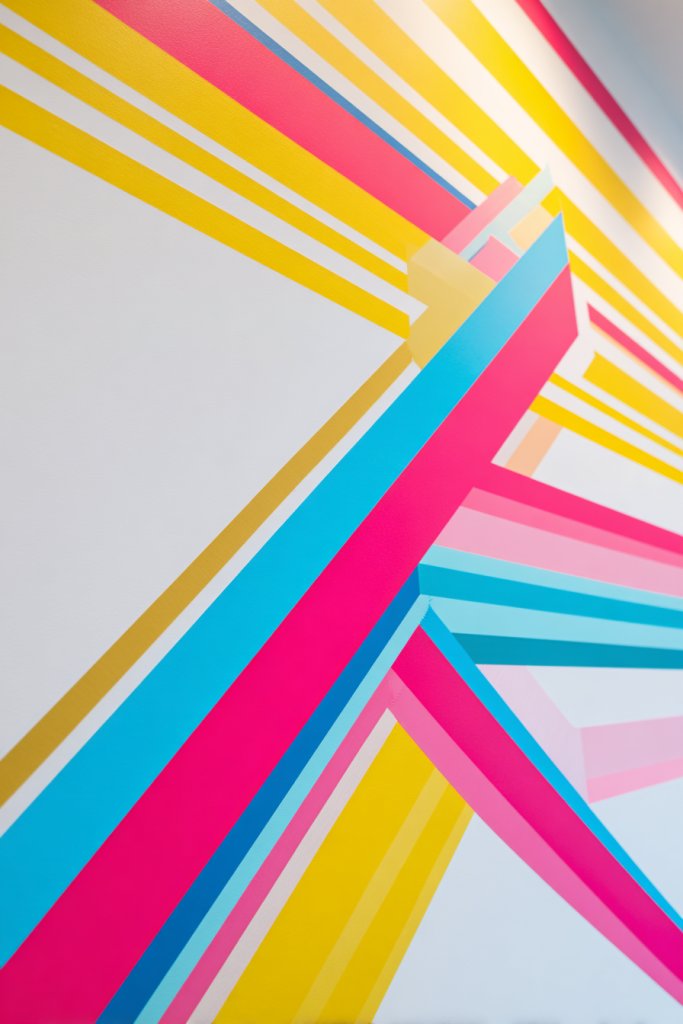 Imagine a crisp wall with intersecting lines in shades of pastel pink, navy, and gold foil accents. The sharp edges of the tape create perfect triangles, rectangles, and chevrons that look like a professional designer did it. The contrast between matte and metallic paints adds a layer of sophistication. The overall effect is sleek, contemporary, and customizable to suit any room’s vibe.