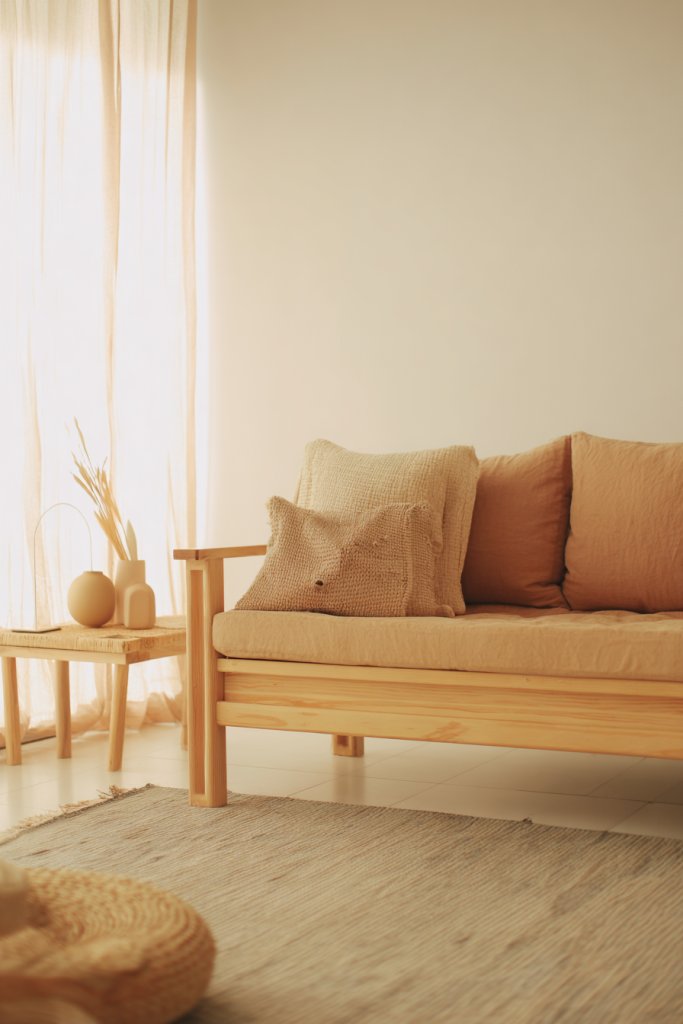 Choose warm-toned wood furniture—think honey or walnut finishes—and layer with textured rugs made of wool or jute. Keep walls light and neutral to enhance natural light. Add plush cushions and throws in complementary earthy shades. Use simple, functional decor to enhance the minimalist vibe, avoiding clutter. The key is balancing textures and tones for a layered, inviting look.