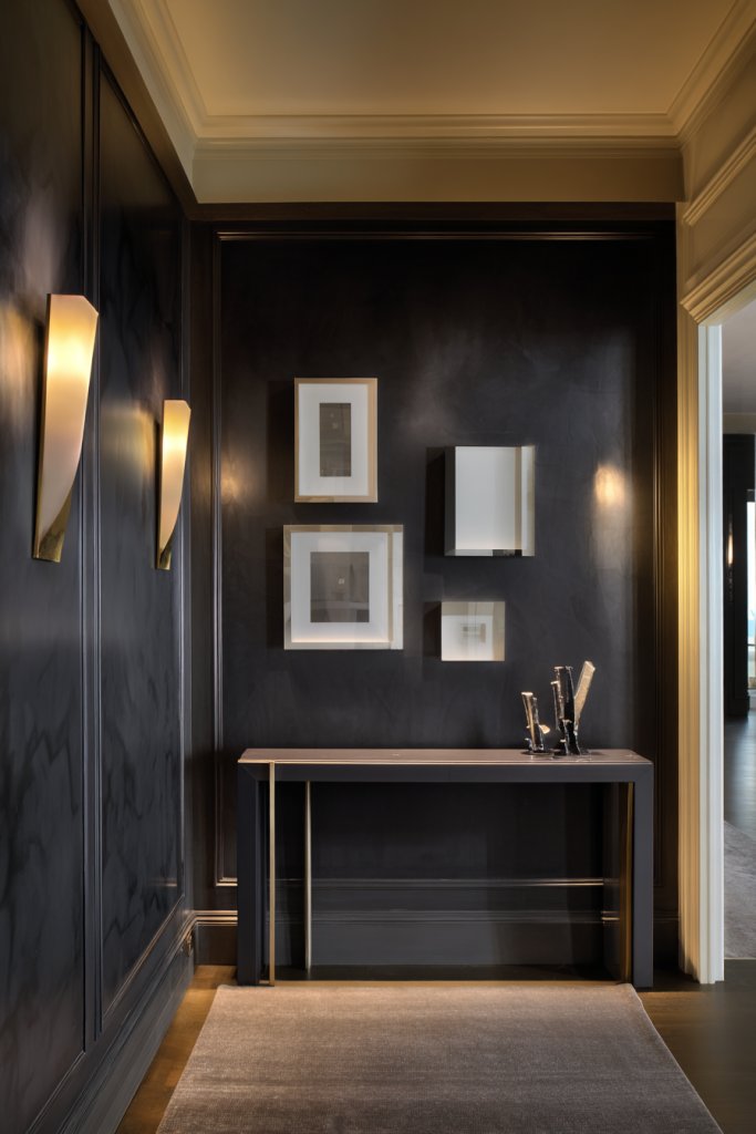 15. Elegant Hallway with Statement Wall and Subtle Lighting