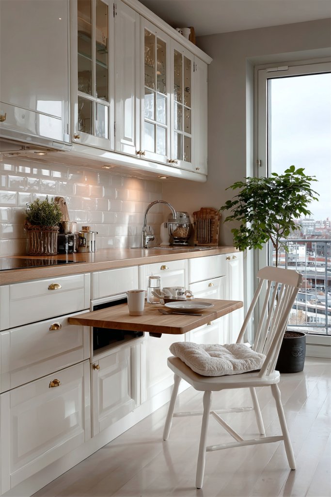 15. Dual-Function Kitchen and Dining Space with a Fold-Down Table