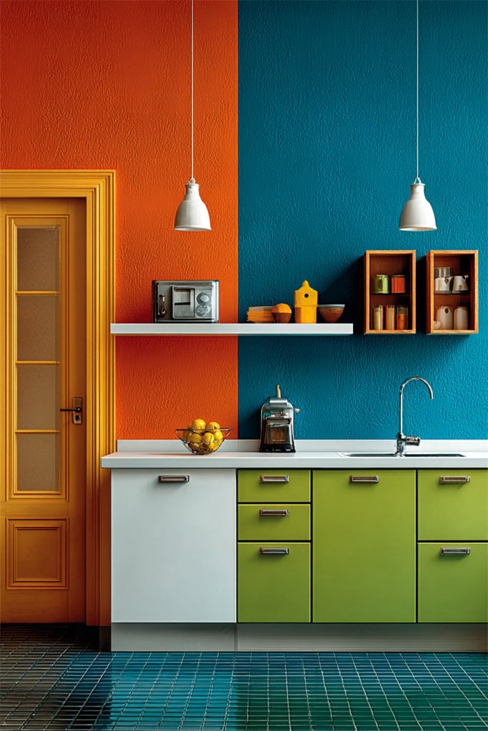 18. Bold Colored Accent Wall to Add Personality to the Cooking Area