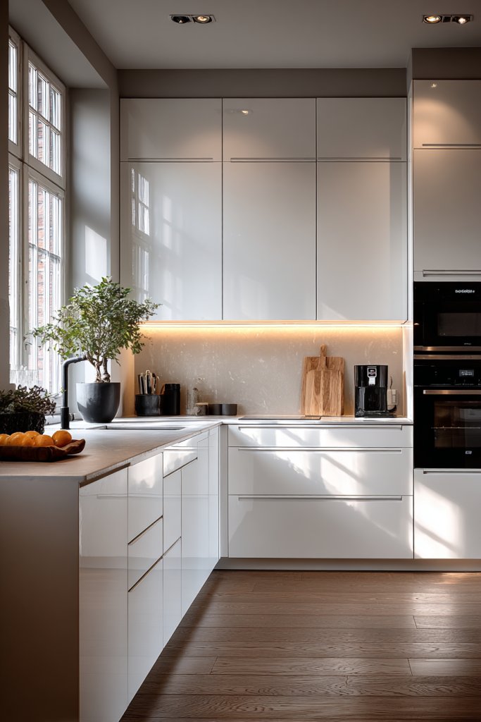 2. Sleek Minimalist Cabinets with Soft-Cclosing Technology for a Modern Look