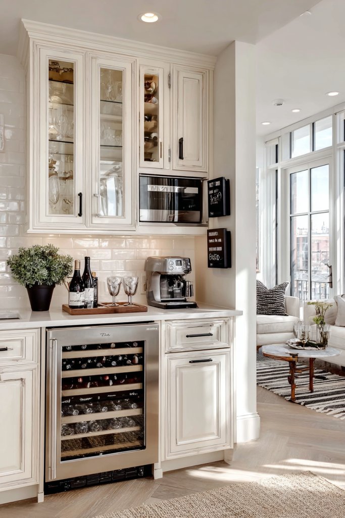 20. Incorporating a Wine Cooler and Beverage Station for Entertaining