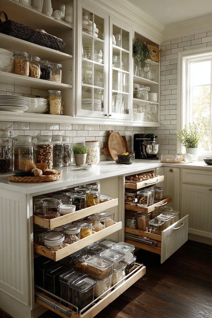 24. Hidden Storage Solutions with Pull-Out Drawers and Corner Carousels