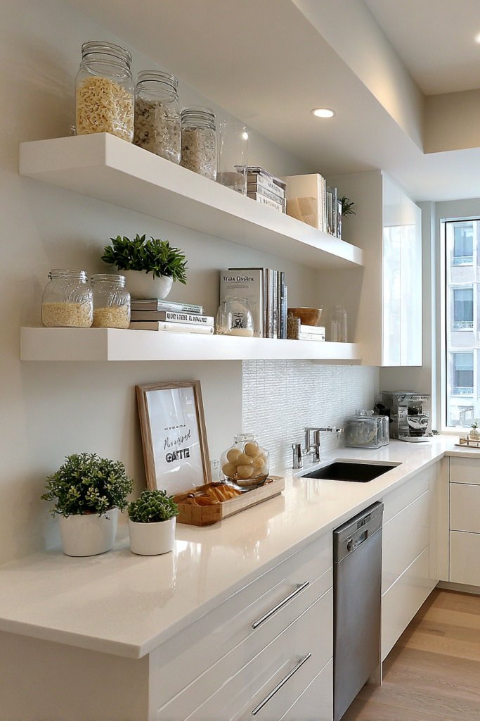 Looking for a way to add both storage and style without cluttering your countertops? Floating shelves offer a sleek solution for displaying essentials and decorative items alike. They create visual interest and make your kitchen feel more open and organized. Who says function can’t be beautiful?