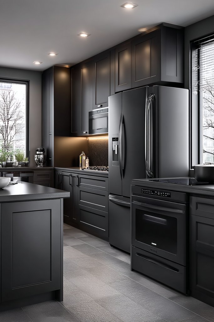 Imagine a kitchen with matte black or soft gray appliances seamlessly integrated into minimalist cabinetry. The muted surface absorbs light rather than reflecting it, creating a subtle, refined look. The appliances’ smooth, non-glossy finish complements matte countertops and textured wall finishes, resulting in a cohesive, contemporary aesthetic.
