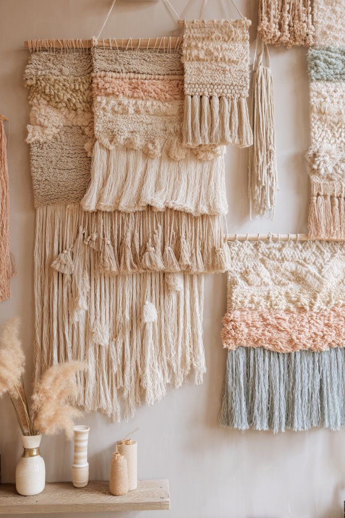10. Boho-Chic Textured Wall Hangings in Soft Tones