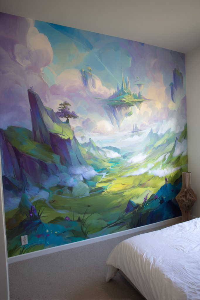2. Whimsical Wall Mural Featuring Fantastical Landscapes