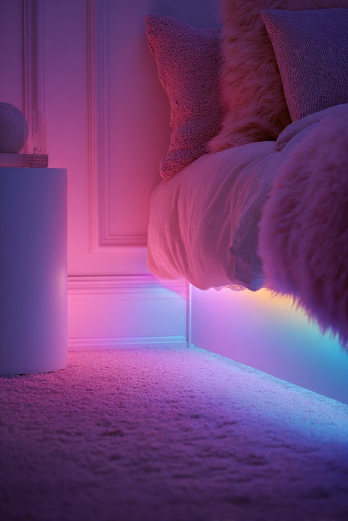 Imagine strips of soft LED lights tucked behind a headboard, along shelves, or around the ceiling perimeter. They cast a gentle, diffused glow in shades of lavender, pink, or blue, mimicking a sunset or starlit sky. When dimmed, the room becomes a tranquil retreat, perfect for relaxing or setting a romantic mood. The subtle, colorful illumination adds depth and dimension, making your space feel magical and inviting.