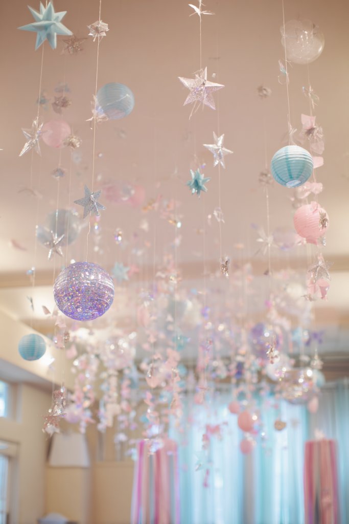 8. Whimsical Ceiling Decor with Hanging Ornaments