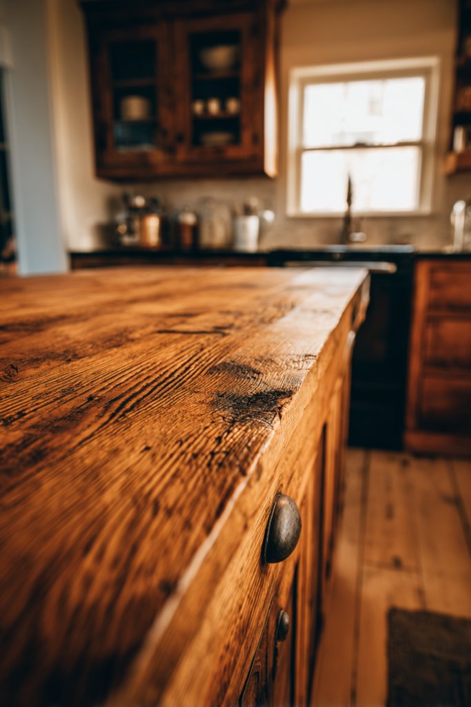 Personalize with custom edge profiles—bevel, chiseled, or rough-cut—to match your style. Pair with open shelving or vintage cabinets to boost rustic appeal. Use natural fiber rugs and handcrafted pottery to complement the textures. Incorporate contrasting materials like copper or wrought iron fixtures for added warmth and character. Each detail reinforces the organic, earthy ambiance.