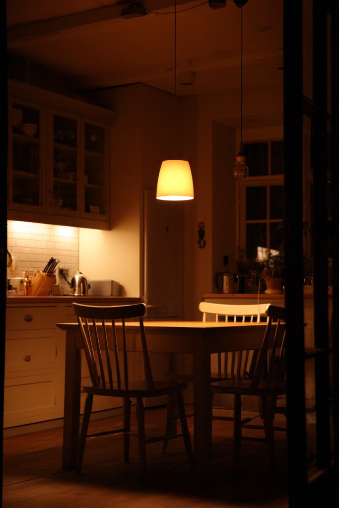 Harsh, cool lighting can kill the cozy, earthy vibe you’re aiming for. Eco-friendly lighting options that emit warm, soft glows transform your kitchen into a welcoming sanctuary. They’re better for the environment and your mood, creating a space you’ll want to linger in. If you crave ambiance and sustainability, this idea is a win.