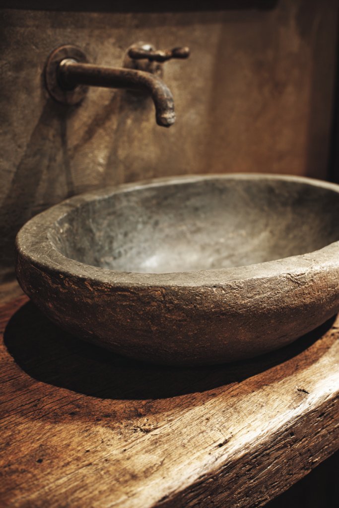 Add carved or textured details, such as subtle patterns or motifs inspired by nature. Use handcrafted fixtures and rustic accessories to complement the sink. Incorporate natural textiles or baskets for organization nearby. Seasonal touches like mineral or clay pigments can refresh the look.