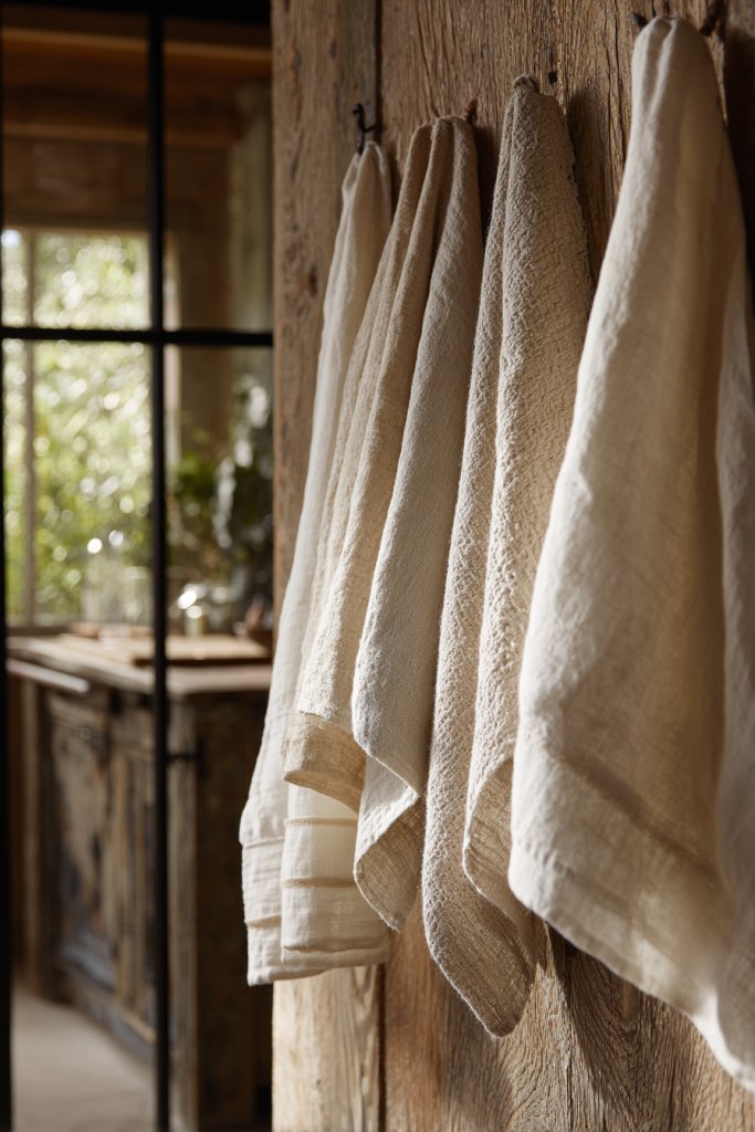 8. Neutral Linen or Cotton Textiles for Curtains and Towels