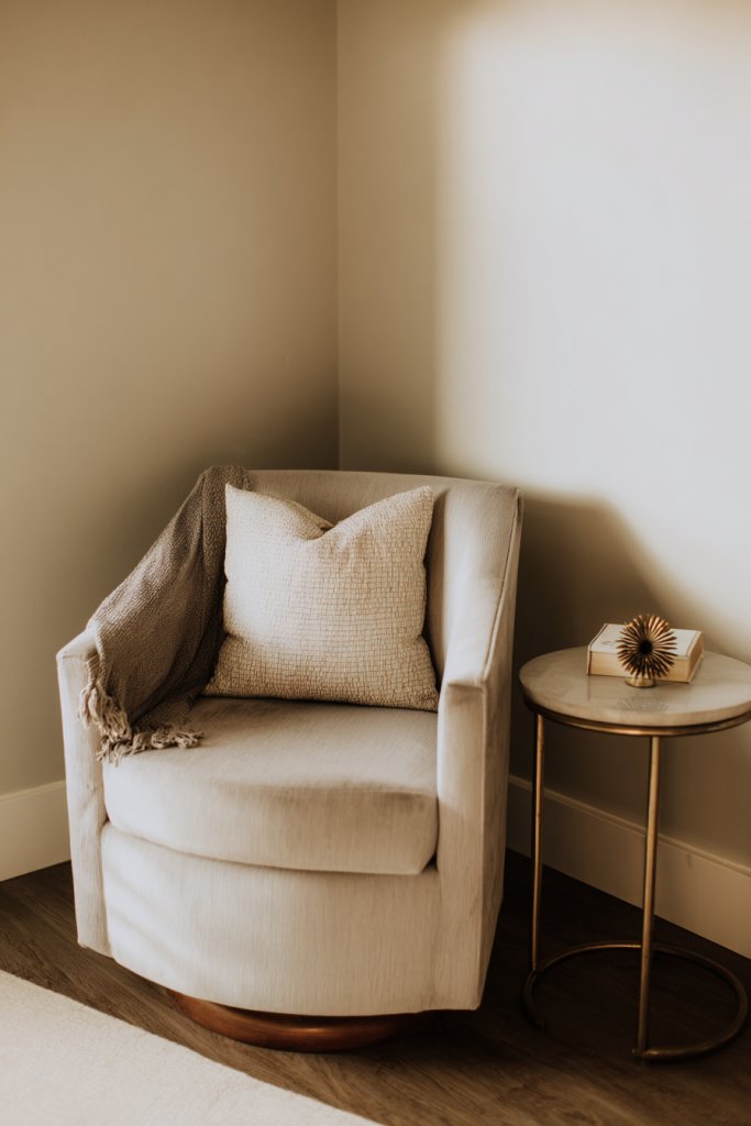 13. Design a Cozy Nook with a Swivel Chair and Elegant Side Table