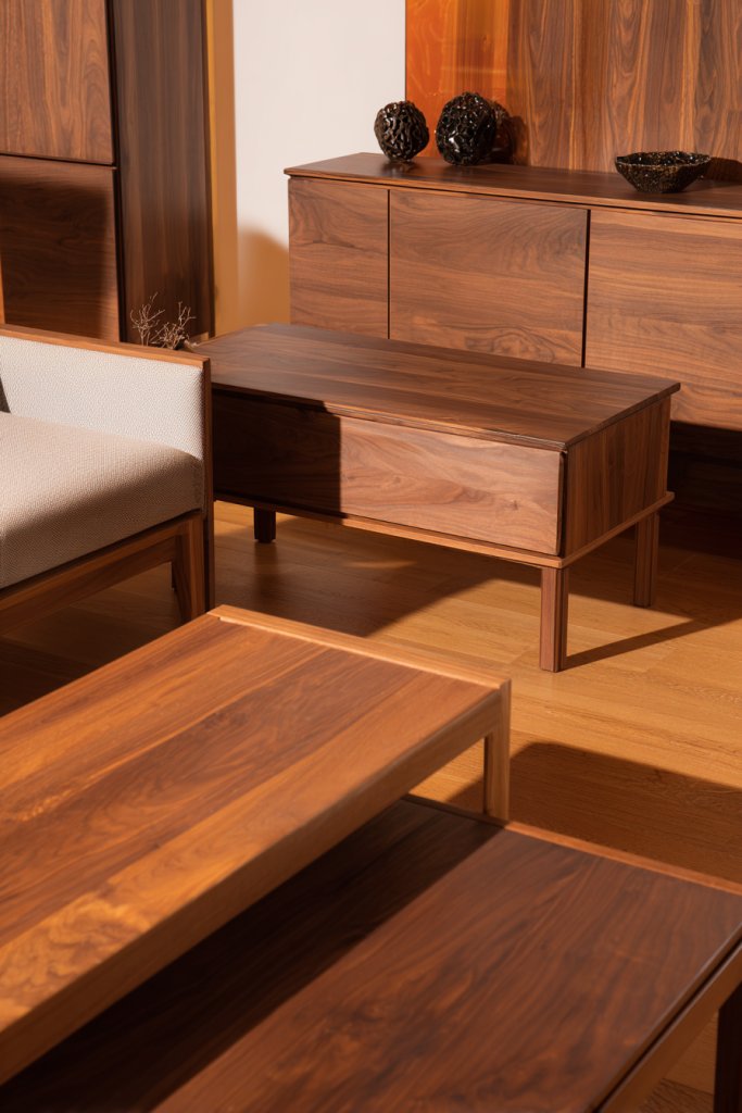 Imagine a living room with rich walnut or oak floors, complemented by furniture in honey or caramel oak finishes. The warm tones create a cozy yet upscale atmosphere, especially when paired with soft textiles and metallic accents. The grain of the wood adds visual texture, making the space feel layered and authentic. Natural light enhances the warmth, highlighting the subtle variations in color and pattern. It’s a space that exudes comfort and effortless elegance.