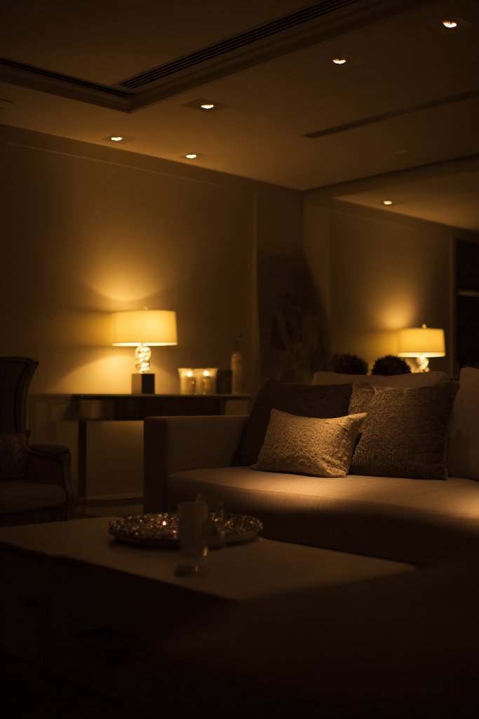 Picture a room with soft recessed lighting in the ceiling, casting a gentle wash of light across the entire space. Complement it with sculptural table lamps on side tables that add visual interest and warmth. The glow from these sources creates a layered effect, highlighting textures and colors without harsh shadows. Dimmable controls allow you to adjust brightness to match your mood, making the room feel intimate and refined. The overall effect is a welcoming, sophisticated ambiance.