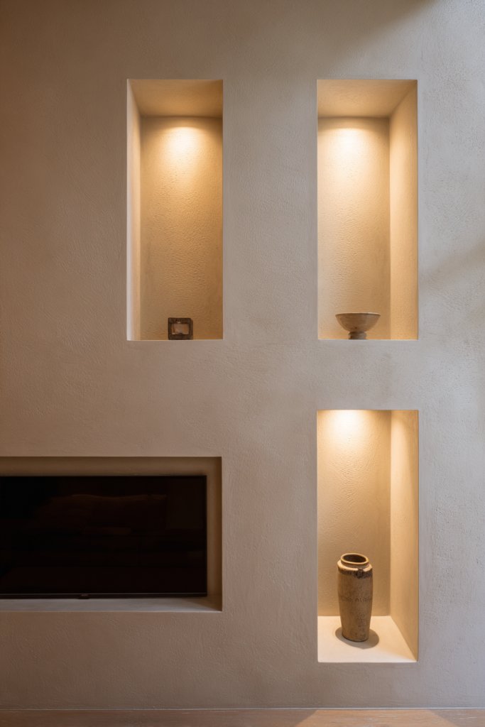 You can customize the size and shape of the niches to fit your room’s proportions. For a sleek look, opt for rectangular or square cutouts, or go for asymmetrical designs for a more artistic vibe. Finish the edges with decorative moldings or metallic trims for added elegance. Incorporate color-changing LED strips for versatility, allowing you to set the mood with different lighting schemes.
