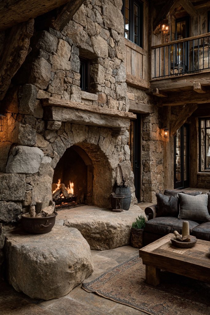 1. Rustic Stone Fireplace Surrounds for a Warm, Natural Feel