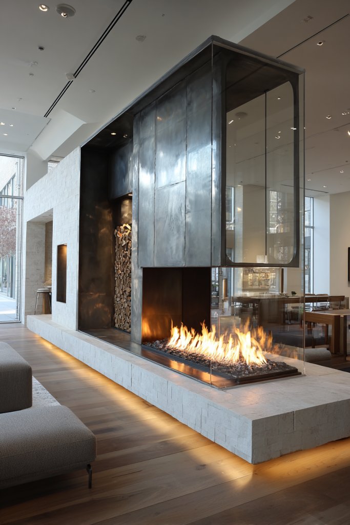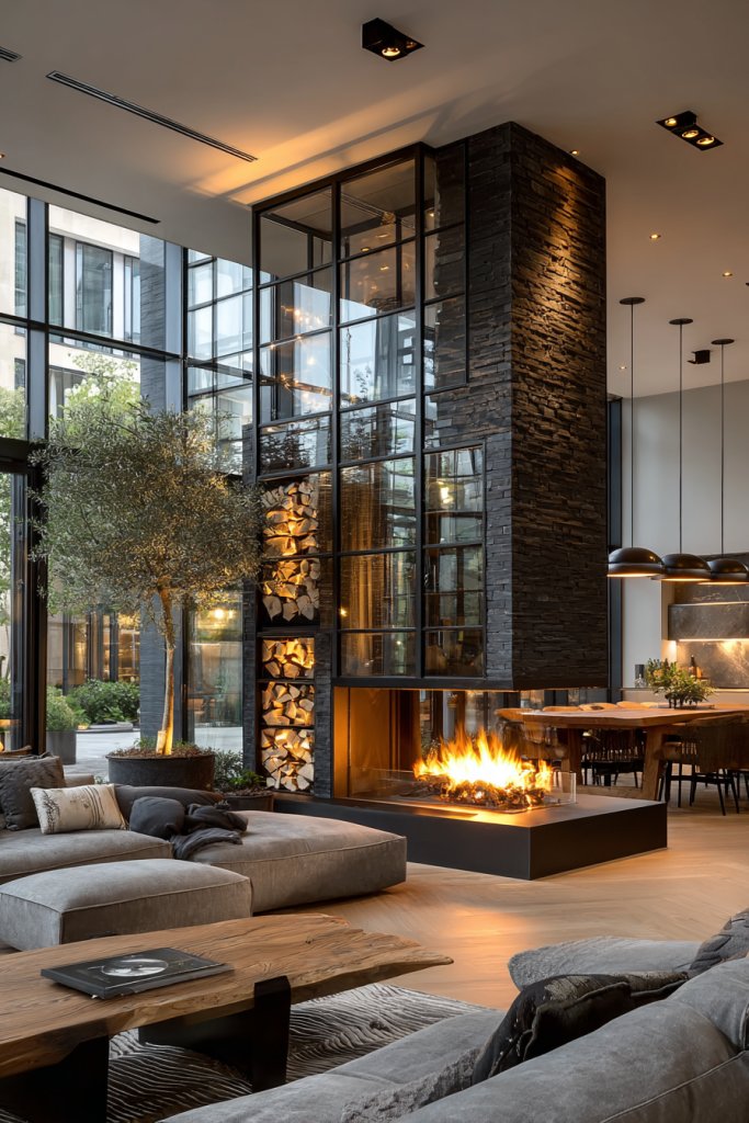 4. Double-Sided Fireplace as a Room Divider in Open-Plan Living Spaces