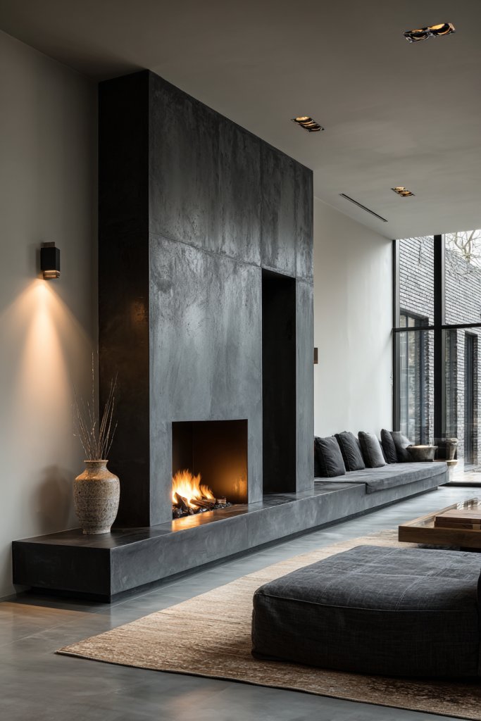 18. Fireplace with a Dramatic Black or Dark-Colored Surround for Contrast