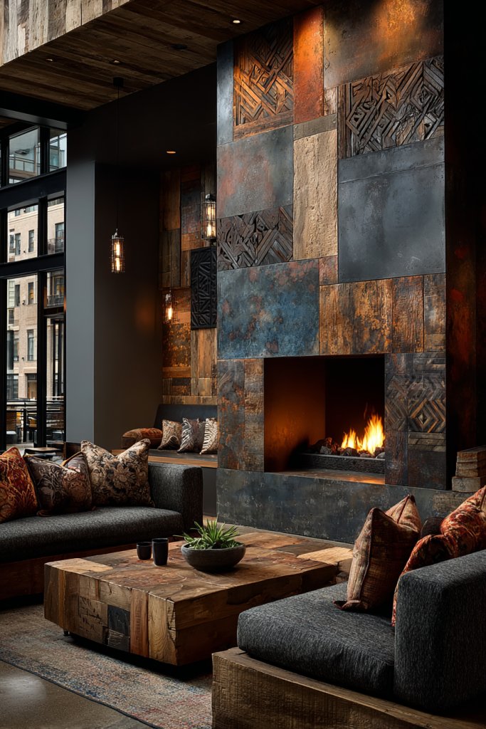 7. Tile-Accented Fireplace with Patterned or Textured Surfaces
