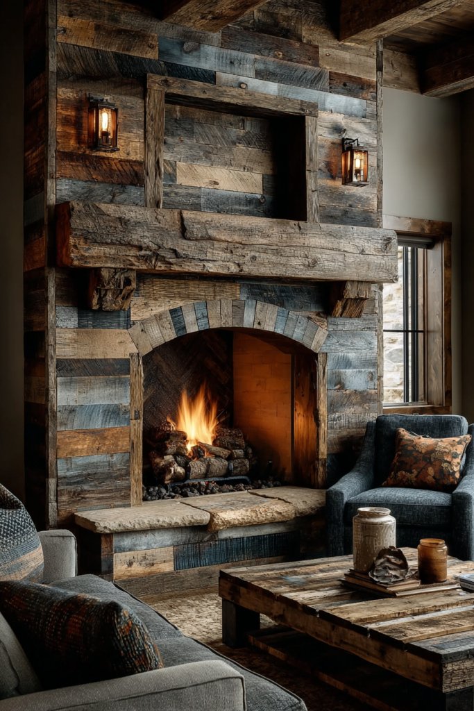 You can keep the wood natural or stain it in shades like gray, black, or deep brown for different vibes. Add decorative metal accents or vintage hardware to enhance the rustic look. This style works well with industrial, farmhouse, or shabby chic interiors. For smaller spaces, a smaller reclaimed wood piece can serve as a mantel or hearth.